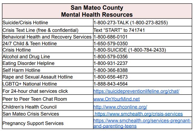 - Mental Health & Wellness Resources from San Mateo County Office of Education